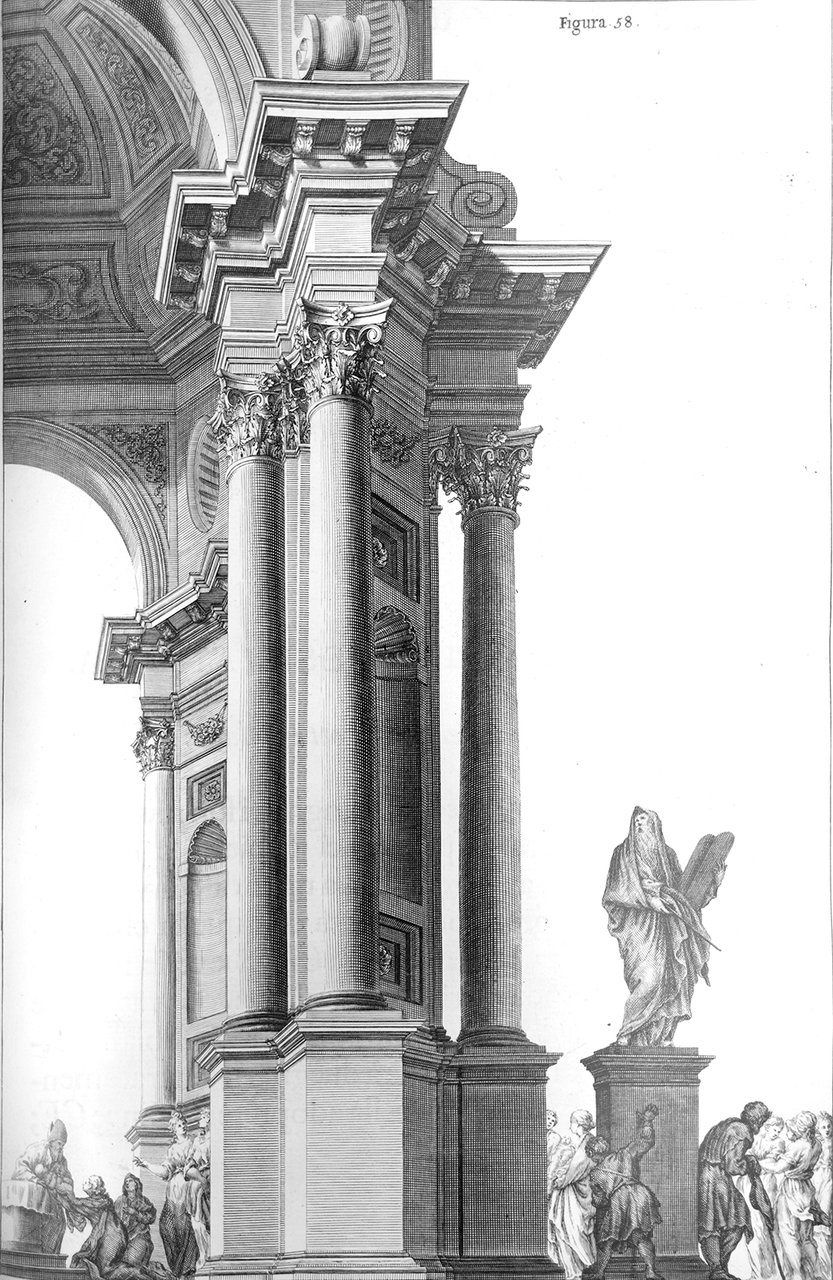 PERSPECTIVA PICTORUM ET ARCHITECTORUM - PROSPETTIVA DE' PITTORI E ARCHITETTI. - In quae docetur modus expeditissimus delineandi opticè omnia que pertinent ad Architecturam / In cui s'insegna il modo più sbrigato di mettere in prospettiva tutti i disegni d'Architettura.