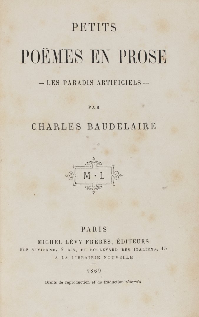 PETITS POËMES EN PROSE. - Les Paradis artificiels.