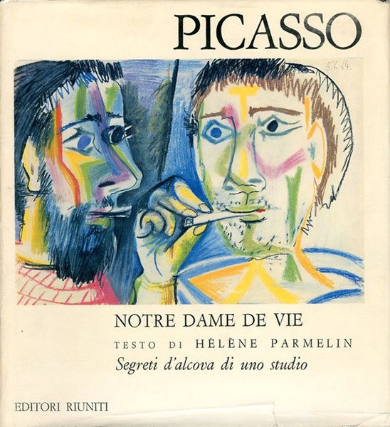 189 p. : ill. ; 31 x 28 cm. Copertina rigida in tela editoriale grigia con riproduzione della firma di Picasso in azzurro e rosso al primo piatto, sovraccoperta illustrata e plastificata a colori al primo piatto (ritratto di due uomini che fumano, disegno su carta, 54x75, 5.6.1964). Con illustrazioni in b/n e a colori (le illustrazioni a colori sono applicate). Finito di stampare il 31 ottobre 1966. Ottimo esemplare (sovraccoperta leggermente ingiallita e con alcuni piccoli strappi ai margini. Testo di Hélène Parmelin. Impaginazione: Charles Feld - Incisione: Steiner e Bosson - Fotografia: Jacques Masson e Pic. - Litografia delle tavole: F. Chenot. Prima ed. italiana del secondo volume dell'opera in due volumi (I ed.: "Notre Dame de Vie", Paris, Édition Cercle d'Art 1966). Traduzione di Ottavio Cecchi. Questa opera composta da due volumi, "Il pittore e la modella" e "Notre Dame de Vie", illustrano gran parte dell'opera di Pablo Picasso degli anni Cinquanta e dei prima anni Sessanta del '900. Il loro valore deriva anche dalla pubblicazione di incisioni originali che il pittore ha eseguito appositamente per il progetto del libro. I disegni nel testo sono particolari di opere del pittore, estratti secondo le sue idee e i suoi consigli. Le parole composte in carattere tondo corrispondono fedelmente alle parole di Picasso; quelle in corsivo ne riferiscono il senso. Indice del testo: Avvertenza; Notre Dame de Vie; Le Jacqueline; Il pittore e la cinepresa; Il libro d'oro; Petruska; La stanza da bagno; La bignonia (pianta); La corrida di Picasso; L'album di famiglia; Picasso pittore; Donna col gatto; Gli arlecchini musicasnti; La fedeltà; Testa al forno; I personaggi; L'incisione; La riproduzione del quadro e il quadro della riproduzione; Il pittore di Picasso; La tvolozza finita; La tavolozza e lo straccio; L'aquila di Prometeo; L'ombra della pianta - Ecco che cosa bisognerebbe dipingere; Il pittore e la data; La personalità; I pittori e l'ambizione; Il fantasma; Senza difetti - Lo strappo francese; Dodici tele in una. Una tela in dodici; Il giardiniere e suo figlio; Il cacciatore astratto; La mano tesa; L'innocenza - Il paesaggio impiccato; L'aristocrazia; La spiaggia nemica; Il colpo di grazia. Codice libreria 330.
