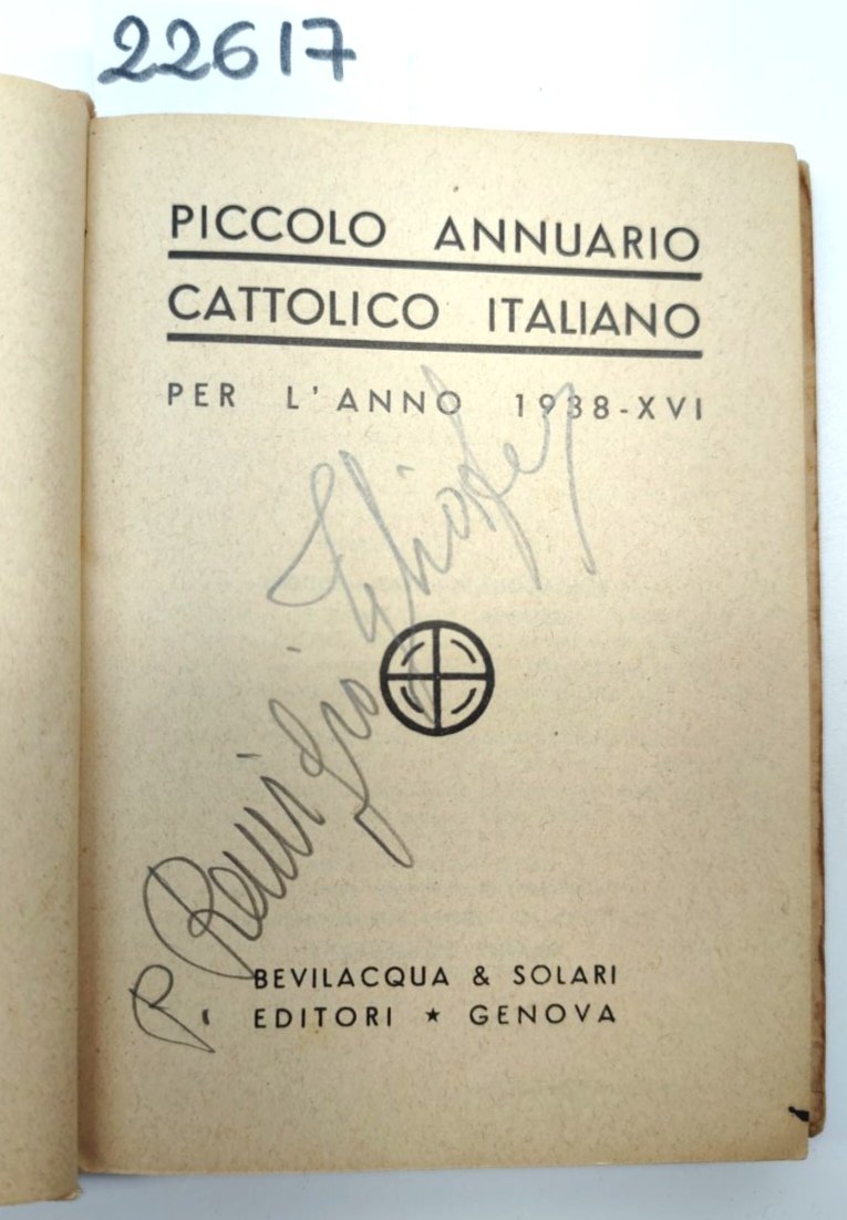 Piccolo annuario cattolico italiano per l'anno 1938 Bevilacqua e Solari