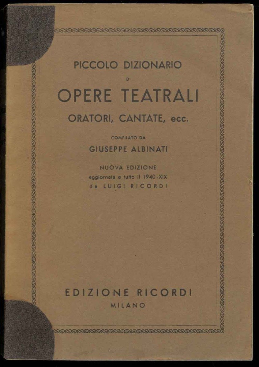 Piccolo dizionario di opere teatrali, oratori, cantante, ecc.