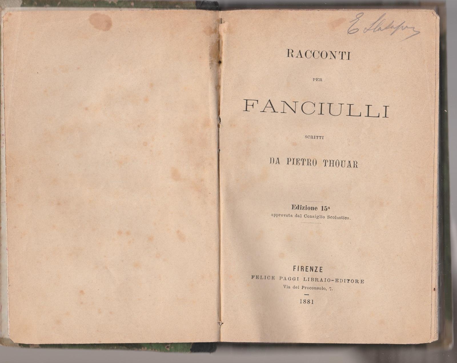 Pietro Thouar-Racconti Per Fanciulli 15∞ Edizione-Firenze Paggi 1881-L4235