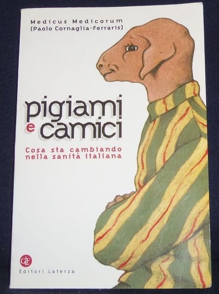 [Sanit‡ Medicina](cm. 21) brossura editoriale figurata, -pp. 216 + 10 pagine bianche in fine, da utilizzare per annotazioni. il volume tenta di rispondere soprattutto a una domanda: in seguito all'introduzione della nuova legislazione sanitaria che cosa sta davvero cambiando nello scenario italiano? Dopo avere introdotto i temi forti della riforma, l'autore analizza i comportamenti di chi gestisce, insegna e opera nella sanit‡. L'ultimo capitolo offre alcune ipotesi di lavoro che consentiranno a medici e infermieri di riflettere sul necessario rapporto fiduciario con i pazienti. In appendice un commento sul decalogo del Tribunale per i diritti del malato e un estratto dello statuto dell'Associazione culturale Camici & Pigiami. Buon esemplare, solo minime mende alla brossura, e qulche fioritura soprattutto alle prime e ultime pagine. [n31]