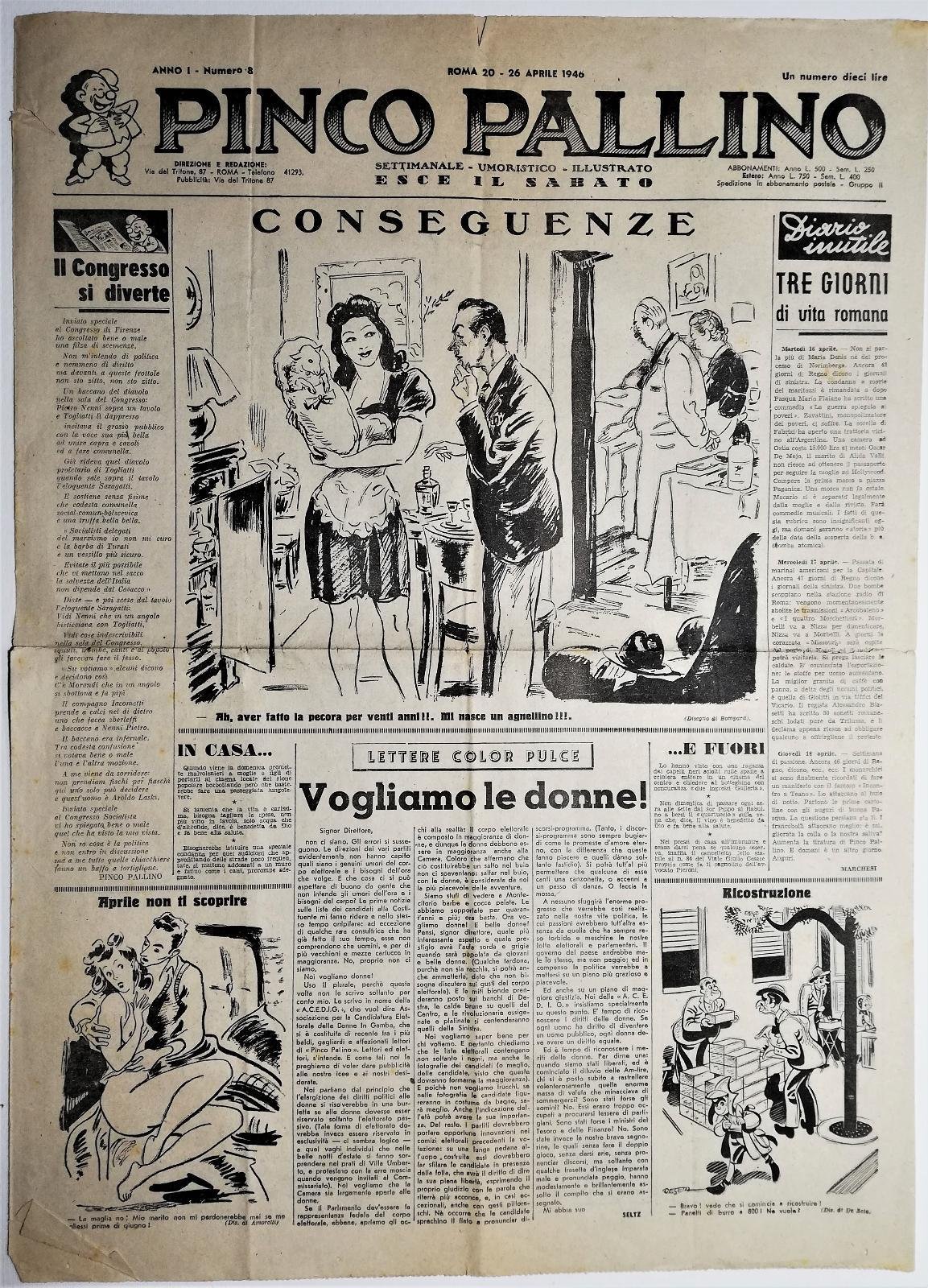 2 numeri anno I∞ numero 8 Roma 20 - 26 aprile 1946, pp. -4 cm. 58 x 41.
