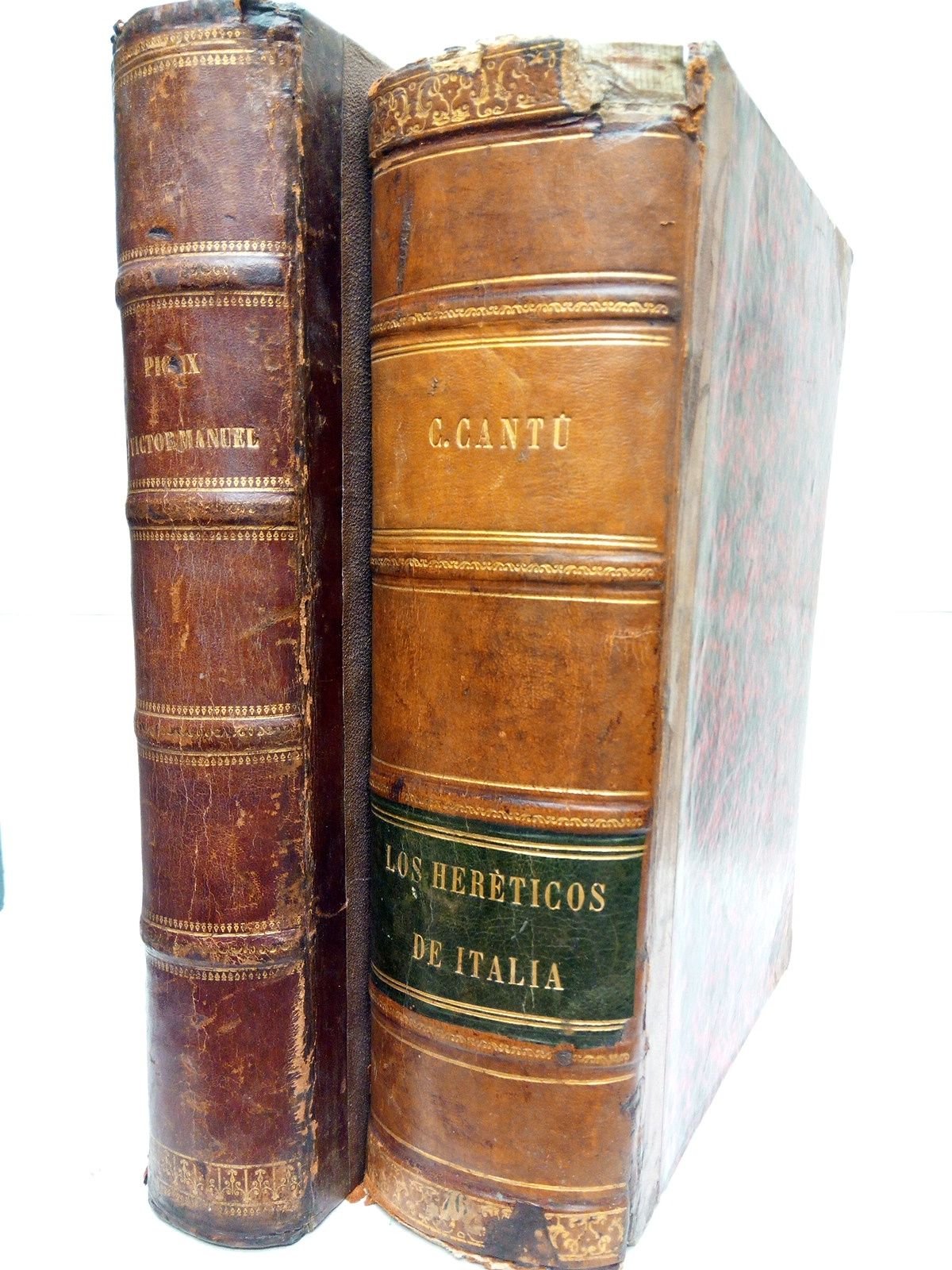 Pio IX y Victor Manuel, ó la lucha entre el poder temporal y la unidad italiana / Bajo la dirección literaria de P. P. (Llevará por apéndice la importante obra titulada Los Herejes -heréticos- de Italia, por CESAR CANTU). Obra ilustrada con magníficas láminas [litográficas], representando vistas de las principales ciudades y monumentos de Italia, y retratos litografiados a dos tintas, de los personajes célebres antigüos y contemporáneos. [SEGUIDO, COMO SE INDICA EN LA PORTADA DEL PRIMER LIBRO, DE] Los Herejes de Italia / por CESAR CANTU; traducida por D. Manuel González Llana
