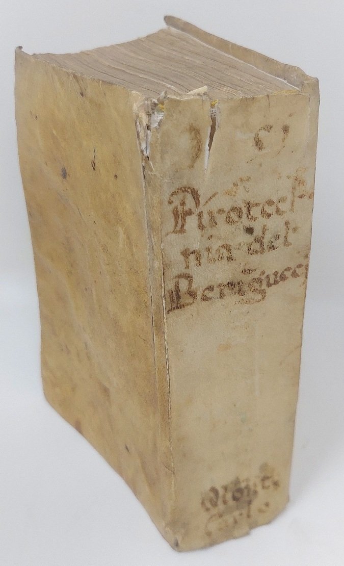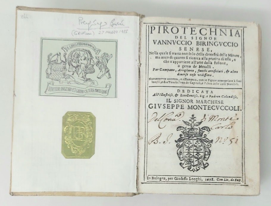 >in-8 (148x100 mm), legatura piena pergamena coeva, titolo manoscritto al dorso (sguardie moderne, piccoli difetti alla cuffia superiore), p. (32), 630; piccole illustrazioni xilografiche n.t. Tra le prime opere di metallurgia e mineralogia, illustra le regole per la conduzione di miniere, descrive i minerali (con i limiti della conoscenza dell'epoca che si basava sul colore e poche altre proprietà), la fusione e la costruzione di campane e artiglierie, varie pratiche chimiche e industriali minori come quella dell'arte distillatoria, della zecca, del fabbro ecc. Ostile all'alchimia, della quale però riconosce la parte utile che prelude la chimica moderna, dimostra di possedere oltre che una estesa conoscenza teorica anche pratica quotidiana e propensione alla sperimentazione empirica. Un autore senz'altro fondamentale nella storia della scienza. Buon esemplare, con antica firma di possesso al frontespizio e doppio ex libris di "Piergiorgio Borio, medico", collezionista lombardo, al contropiatto anteriore (lieve alone marginale nella prima parte del volume). DIBNER, Herald of science, p. 23. BRUNET e HAYM ricordano le edizioni precedenti (1540, 1550, 1558, 1559) Bibliotheca Esoterica, p. 43, cita un'ed. in francese del 1627. MIELI, Gli scienziati italiani, I, 20-24. De la Pirotechnia, Il Polifilo, p. XIV