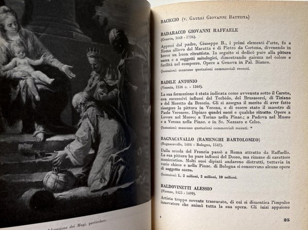 Soggetti: Arte, Pittura, Stili, Opere pittoriche, Quadri, Pittori, Valori, Guide, Valutazione, Dipinti italiani, Libri illustrati, Libri Vintage Fuori catalogo, Trecento, Quattrocento, Cinquecento, Seicento, Settecento, Umanesimo, Rinascimento, Tema religioso, Mitologia, Iconografia, Soggetti storici, Soggetti biblici, Madonne, Cristianesimo, Chiesa, Committenze private, Mecenatismo, Opere pittoriche, Scuole, Tecniche, Colore, Restauro, Conservazione, Beni culturali, Valutare, Stime, Neoclassicismo, Barocco, Roccocò, Gotico, Rinascimentale, Chiaroscuri, Luci, Ombre, Natura morta, Quotazioni, Mercato, Composizione, Disegno, Olio su tela, Tavole, Tempera, Biennale veneziana, Accademia, Acquarello, Artisti, Collezionismo, Collezioni, Nomi, Elenchi, Milioni, Lire, Anni Cinquanta, Scuola Napoletana, Critica, Antiquariato, Antichità, Estetica, Giudizio, Bellezza, Rarità, Prezzo, Aste, Riferimento, Mercati internazionali, Appassionati, Amatori, Mercanti, Capolavori, Biografie, Maestri, Allievi, Vergine delle rocce, Leonardo da vinci, Michelangelo, Botticelli, Masaccio, Massimo Stanzioni, Barnaba da Modena, Antonello da Messina, Scuola siciliana, Prospettiva, Colori, Allegorie, Sebastiano Ricci, Adorazione dei Magi, Natività, Veronese, Ratto d'Europa, Guardi, Giudecca, Venezia, Firenze, Toscana, Emilia, Ritratti, Giovanni Bellini, Sacchi, Caravaggio, Influssi, Artemisia Gentileschi, Giuseppe de Ribera Spagnoletto, Seguaci, Bernardo Cavallino, Battistello Caracciolo, Salvator Rosa, Mattia Preti, Reni, Annibale Carracci, Scuola romana, Guercino, Manetti, Napoli, Luca Giordano, Beaumont, Solimena, De Mura, Giaquinto, Todeschini, Bologna, Bibbiena, Gambarini, Locatelli, Vanvitelli, Ricci, Tiepolo, Canaletto, Guardi, Aniello Falcone, Battaglie, Benedetto Luti, Domenico Ferretti, Primavera, Venere, Art, Painting, Styles, Paintings, Painters, Values, Guides, Evaluation, Italian Paintings, Illustrated Books, Out of Print Books, Fourteenth Century, Fifteenth Century, Sixteenth Century, Seventeenth Century, Eighteenth Century, Humanism, Renaissance, Religious Theme, Mythology, Iconography, Historical subjects, Biblical subjects, Madonnas, Christianity, Church, Private clients, Patronage, Paintings, Schools, Techniques, Color, Restoration, Conservation, Cultural heritage, Evaluate, Estimates, Neoclassicism, Baroque, Gothic, Renaissance, Lights, Shadows, Still life, Quotes, Market, Composition, Drawing, Oil on canvas, Tables, Academy, Watercolor, Artists, Collectibles, Collections, Names, Lists, Millions, Fifties, Neapolitan School, Criticism, Antiques, Antiquity, Aesthetics, Judgment, Beauty, Rarity, Price, Auctions, Reference, International markets, Enthusiasts, Amateurs, Merchants, Masterpieces, Biographies, Masters, Students, Virgin on the rocks, Sicilian school, Perspective, Colors, Allegories, Adoration of the Magi, Nativity, Rape of Europe, Venice, Florence, Tuscany, Influences, Followers, Roman school, Naples, Battles, Spring, Venus