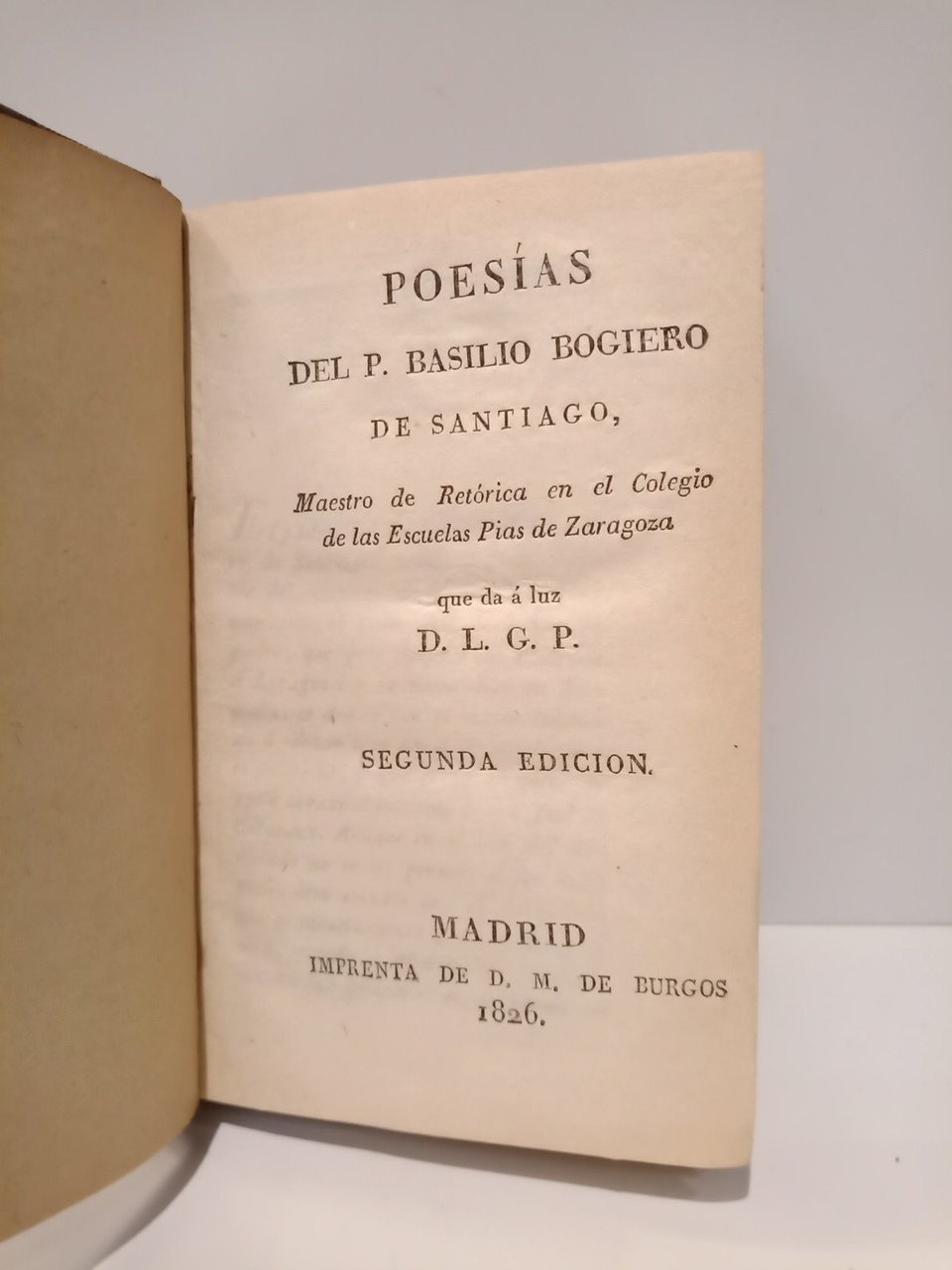 Poesías del P. Basilio Bogiero de Santiago, Maestro de Retórica en el Colegio de las Escuelas Pías de Zaragoza, que da a luz D. L. G. P.
