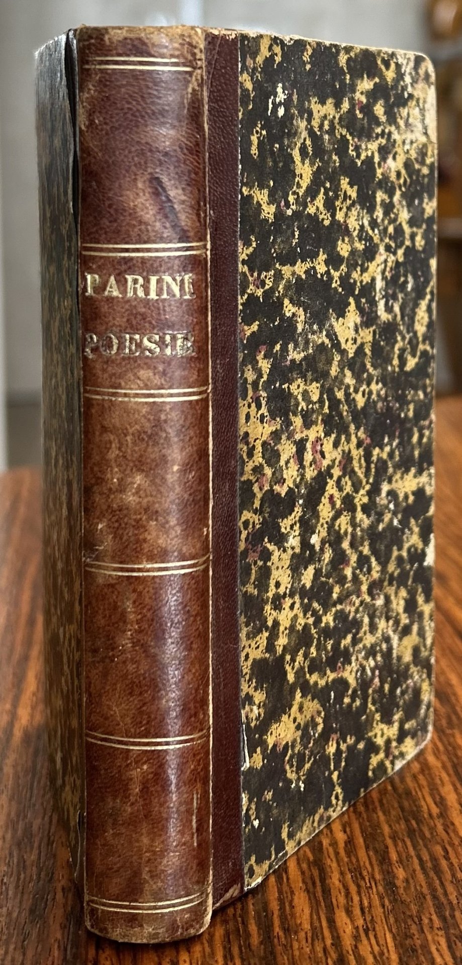 >in-24 (135x75 mm), pp.XV, 223, (3), legatura del tempo mezza pelle, titolo e filetti oro al dorso, tagli spruzzati blu. Precede l'inizio de “Il giorno", “La Vita di Parini scritta da Francesco Reina”. Graziosa edizione. Bell'esemplare.