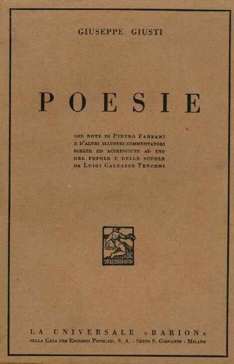 Poesie. Con note di Pietro Fanfani e d'altri illustri commentatori scelte e accresciute ad uso del popolo e delle scuole da Luigi Galeazzo Tenconi. Ed.A.Barion- Casa per Edizioni Popolari, Sesto San Giovanni, 1933. 16�gr., pp. 399 (1). Br. edit.� Rare sottolineature e note a lapis