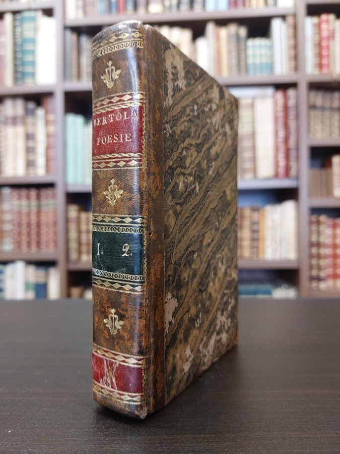 2 tomi (di 6) in 1 volume in-8° (cm. 15,3), graziosa legatura coeva in mezza pelle ad angoli, dorso con titoli in oro su tasselli rossi e verdi e fregi in oro (lievi tracce d'uso ai piatti), tagli spruzzati in blu; pp. [8] 197 [1], 199 [1] in stato molto buono (lievi fioriture sparse). Con 1 ritratto litografico dell'autore in seppia all'antiporta fuori testo. Si tratta delle favole (vol.I) e delle Odi (vol.II). Cfr. Gamba, 2544. In ottimo stato. (SF1)