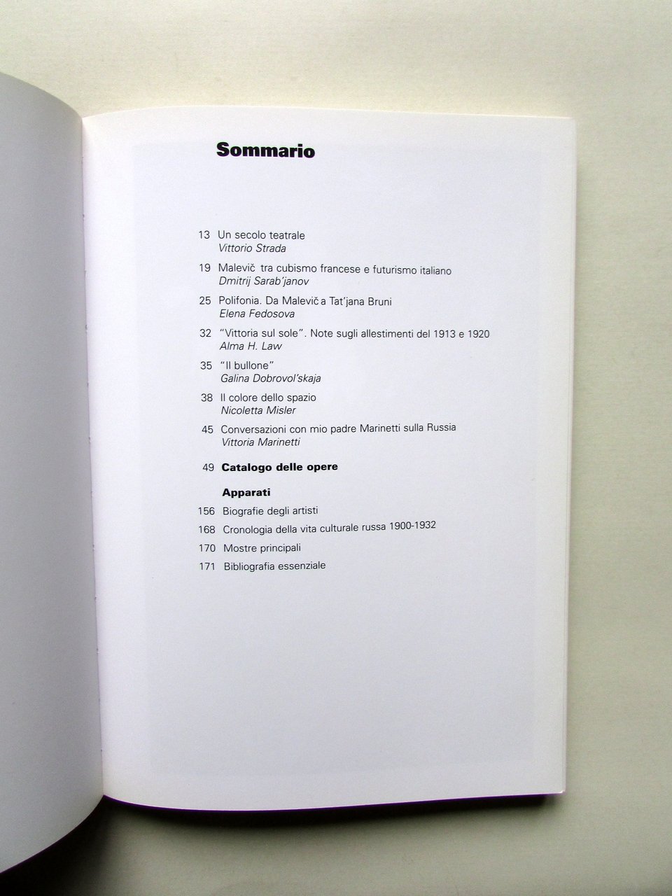 Catalogo, Polifonia da Malevic a Tat'Jana Bruni 1910-1930 bozzetti teatrali dell'avanguardia russa a cura di Elena Fedosova, Elena Grusvickaja, Marina Benzoni Electa, Milano 1998; cm 24x17; pp. 172 con ill.; brossura ed. Condizioni di conservazione Buone condizioni con tracce d'uso, brossura con leggerissime tracce di sporco e minimi difetti agli angoli. Al dorso un leggero segno di utilizzo. Interni ottimi. SETT51.L26478 N