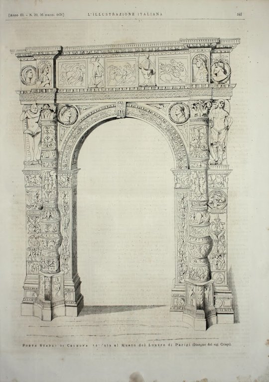 Porta Stanga di Cremona, venduta al Museo del Louvre di Parigi. Stampa 1876