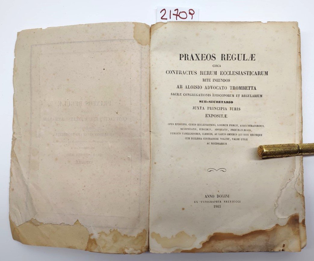 Praxeos regulae circa contractus rerum eccclesiasticarum rite ineundos ab Aloisio advocato Trombetta sacrae congregationis episcoporum et regularium sub-secretario juxta principia jurisv expositae Salvucci 1865