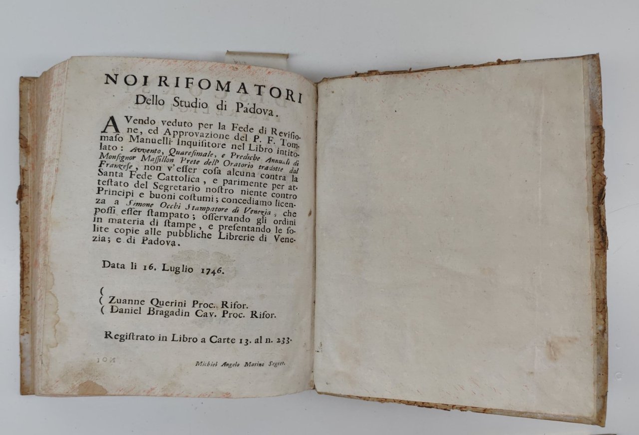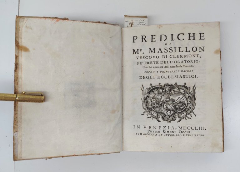 Prediche di Mr. Massillon vescovo di Clermont fu prete dell'oratorio uno dei quaranta dell'Accademia franzese Sopra i principali doveri degli ecclesiastici in Venezia 1753 presso Simone Occhi