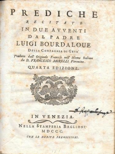 Prediche recitate in due avventi dal padre Luigi Bourdaloue della Compagnia di Gesù