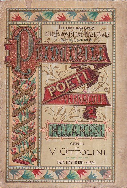 In-8°, pp. 101, (3), brossura editoriale sontuosamente illustrata in cromolitografia. 3 ritratti f.t. (del Porta, del Balestrieri e del Maggi) incisi in litografia. Restauri alla brossura. Fioriture consuete. Prima edizione. Studio critico corredato di antologia sui maggiori poeti dialettali milanesi: Porta, Grossi, Lomazzo, Maggi, Birago, Larghi, Balestrieri, Bossi, Pelizzoni, Rajberti, Ventura, ecc. Il volume fu pubblicato in occasione dell'Esposizione Nazionale di Milano. Milano nei suoi libri e nelle sue stampe, n. 269.