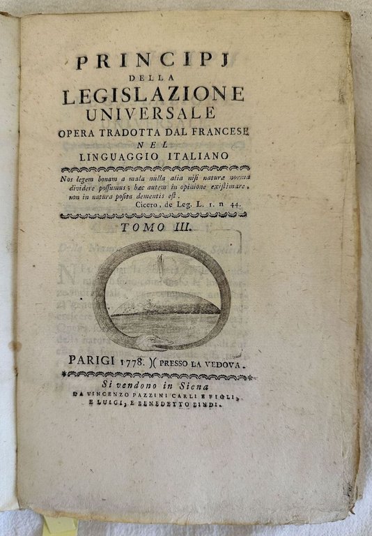 PRINCIPI DELLA LEGISLAZIONE UNIVERSALE OPERA TRADOTTA DAL FRANCESE NEL LINGUAGGIO ITALIANO TOMO III