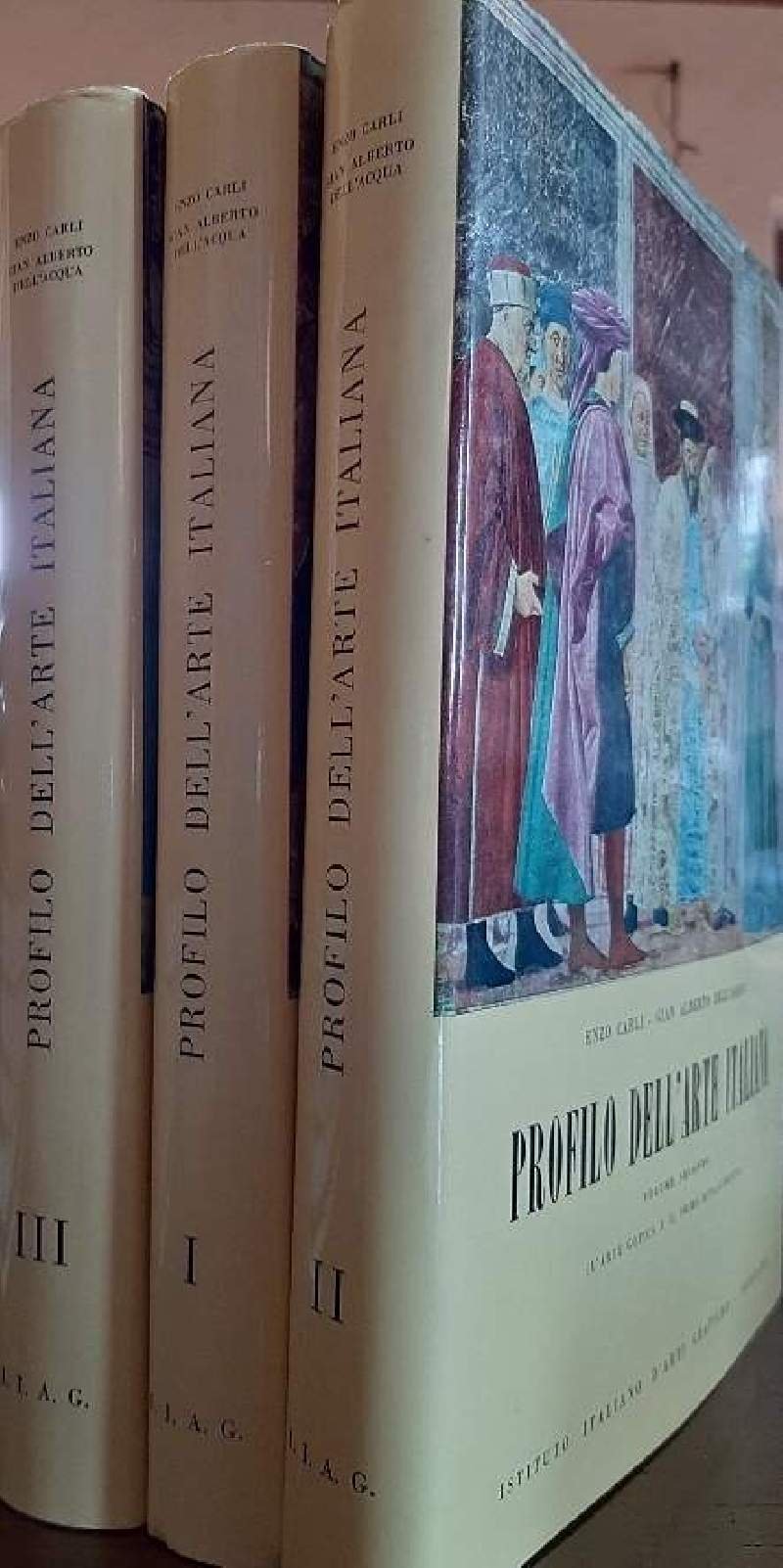 In 8' gr., 3 voll., tela ed. con tit. in oro al piatto e al dorso, sovrac. ill col.- vol I, dalle origini all'arte romanica, pp. 400, ill. in n. n.t.; vol. II- L'arte gotica e il primo Rinascimento, pp. 447, ill. in n. e col. n.t.- vol III, dal Rinascimento ai Contemporanei, pp. 509, ill. prevalentemente in n. n.t., ordinari segni del tempo, qualche ingiallimento.Luogo di pubblicazione BergamoEditore Istituto Italiano d'arti graficheAnno pubblicazione 1964Materia/Argomento Arte, Storia dell'arteScaffale 45/2Autore Carli, Enzo- Dell'Acqua, Gian Alberto ***Due to bureaucratic reasons, books dated over 70 years old cannot be immediately exported, please contact us before placing the order.***