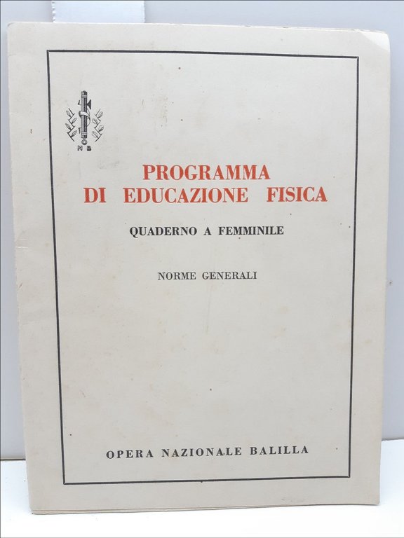 Programma di educazione fisica quaderno A femminile norme Generali opera Nazionale Balilla senza data