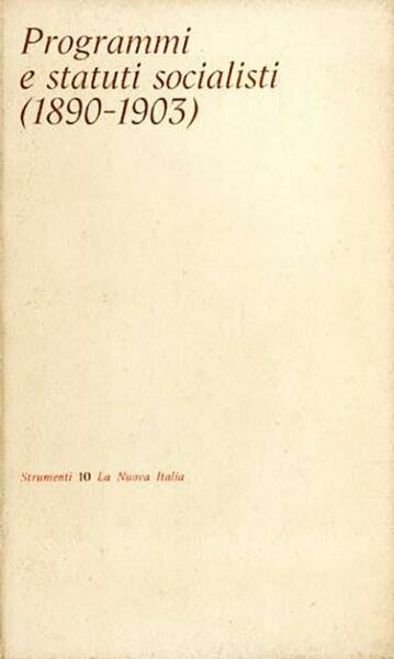 49 p. ; 20 x 12 cm. Strumenti. Fonti, 10. I documenti pubblicati nella presente raccolta intendono presentare sommariamente i capisaldi programmatici e organizzativi sui quali si è fondata la costruzione e l'affermazione dei moderni partiti socialisti nell'età della II Internazionale. Presentazione di Franco Andreucci. . Brossura editoriale, coperta in cartoncino flessibile con impresso il titolo al piatto e al dorso. Qualche segno del tempo ai profili e alla coperta, pagine leggermente ingialliti per il resto esemplare integro. Codice libreria 8043.