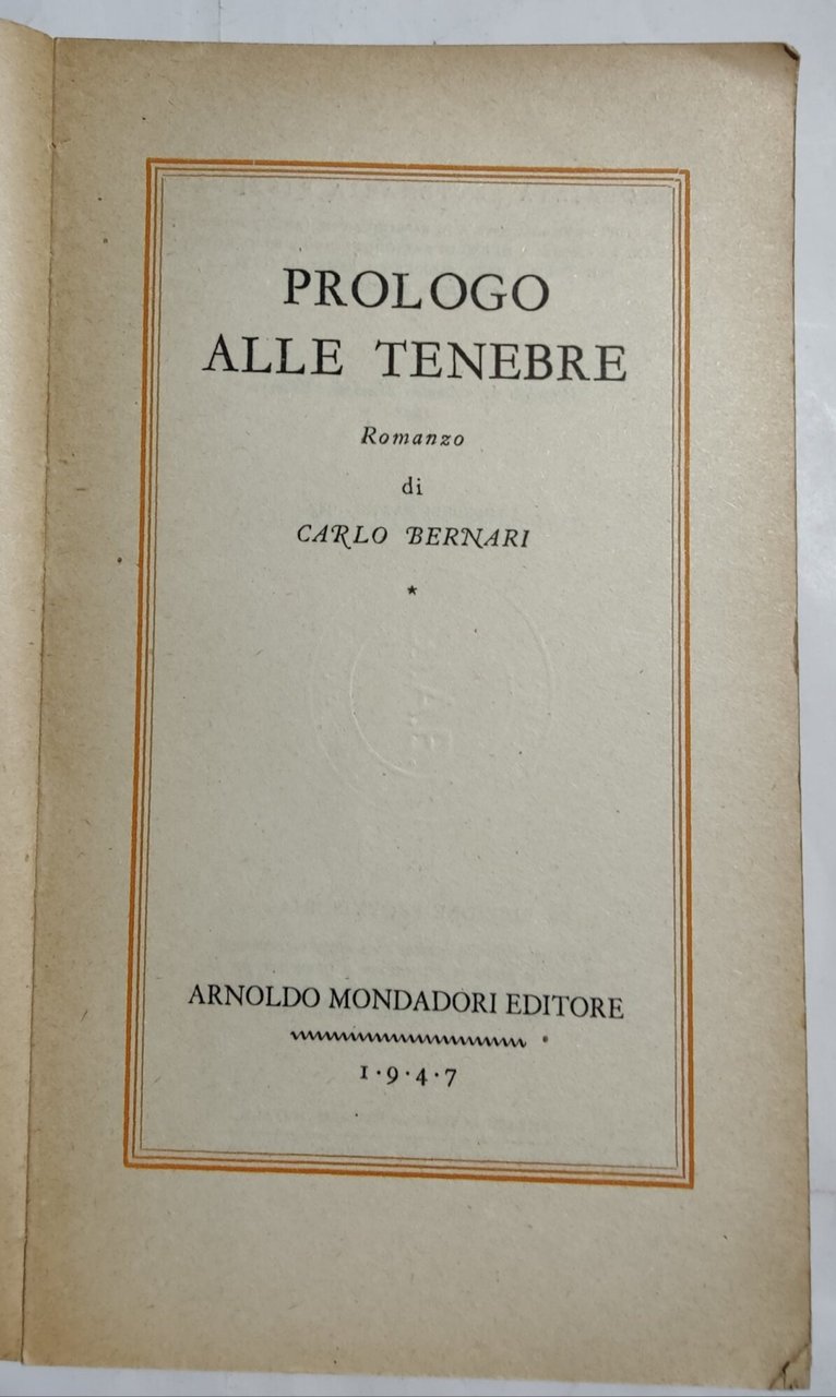 Prologo alle tenebre | Libros antiguos y modernos | Bernari, Carlo