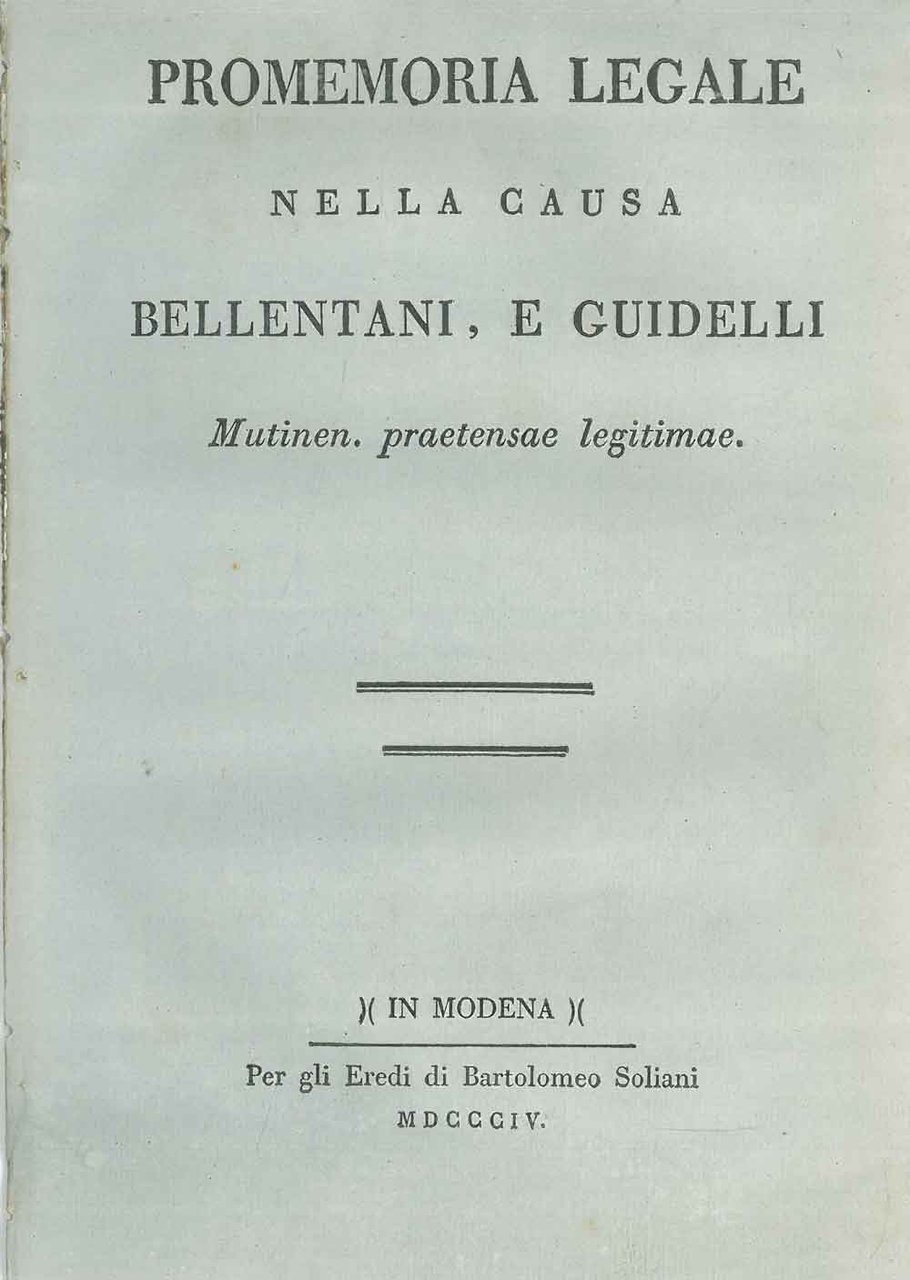 Promemoria legale nella causa Bellentani, e Guidelli mutinen. praetensae legitimae