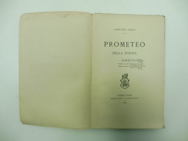 In 16, pp. 194. Danni rip. al d. Br. ed. Ed. orig. di quest'opera in cui Graf affronta il mito di Prometeo in letteratura. Citazioni e commenti dall'opera di Esiodo, Eschilo, Calderon de la Barca,Goethe, Schlegel, Schelley, etc.