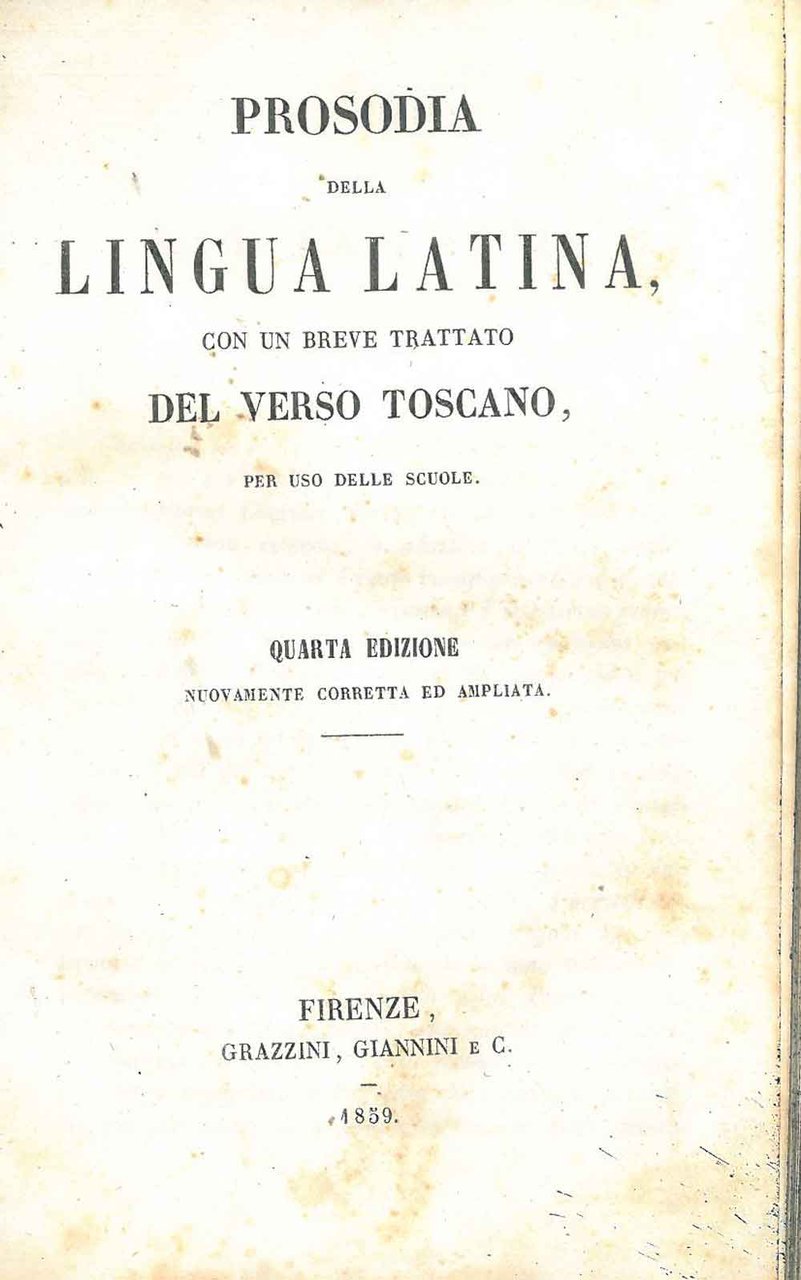 Prosodia della lingua latina. Con un breve trattato del verso toscano