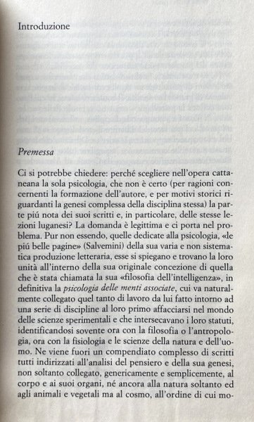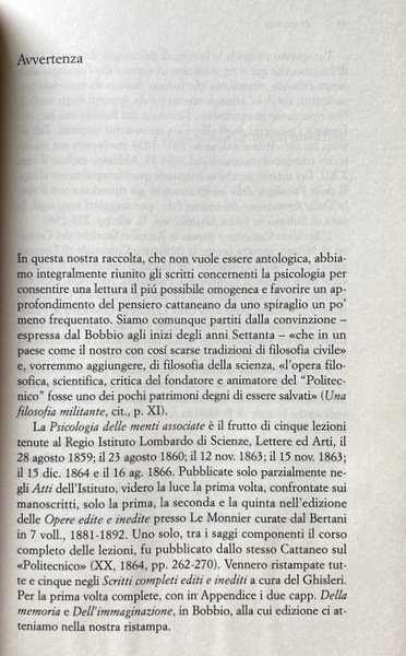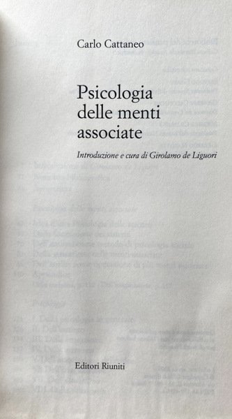 La Psicologia delle menti associate è accompagnata in questa edizione dalle lezioni che Cattaneo tenne a Lugano dal 1853 al 1863. Questi scritti, che si collocano all'incrocio tra esame della psicologia individuale e analisi sociologica, testimoniano una modernità di interessi che influenzerà la cultura italiana nei decenni successivi.