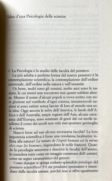 Soggetti: Psicologia sociale, Società, Scienze sociali, Sociologia, Pensiero scientifico, Filosofia dell'intelligenza, Scienze umane, Pensieri, Definizioni, Scritti critici, Patrioti italiani del XIX secolo, Risorgimento, Positivismo, Interpretazione sociale nello sviluppo dell'individuo, Scritti filosofici, Illuminismo, Libri Vintage Fuori catalogo, Classificazione, Sintesi, Giudizio, Istinti, Memoria, Immaginazione, Sensazioni, Volontà, Massa, Individui, Azione, Dinamiche sociali, Idee, Associazioni, Intellettuali, Salvemini, Natura, Fisiologia, Scienza, Antropologia, Modernità, Linguaggio, Istintualità, Razionalità, Frenologia, Neurologia, Herbart, Lindner, Flourens, Gian Domenico Romagnosi, Ferrari, Genesi, Comte, von Humboldt, Gall, Kosmos, Naturalismo, Giovanni Rasori, Paolo Frisi, Vincenzo Malacarne, Regio Istituto Lombardo, Corsi, Lezioni, Facoltà mentali, Social Psychology, Society, Social Sciences, Sociology, Scientific Thought, Philosophy of Intelligence, Human Sciences, Thoughts, Definitions, Critical Writings, 19th Century Italian Patriots, Positivism, Social Interpretation in the Development of the Individual, Philosophical Writings, Enlightenment, Out of print books, Classification, Synthesis, Judgment, Instincts, Memory, Imagination, Associated minds, Sensations, Will, Mass, Individuals, Action, Social dynamics, Ideas, Associations, Intellectuals, Salvation, Nature, Physiology, Science, Anthropology, Modernity, Language, Instinctuality, Rationality, Phrenology, Neurology, Genesis, Naturalism, Royal Lombard Institute, Courses, Lessons, Mental Faculties
