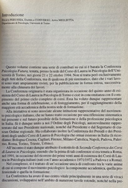PSICOLOGIA FUTURA. A CURA DI FELICE PERUSSIA, DANIELA CONVERSO, ANNA MIGLIETTA | Libros antiguos y modernos | Aa.Vv. (Autori Vari)