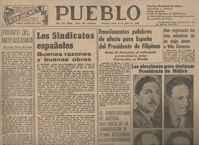 PUEBLO. AÑO VII. NUM. 1.962. MADRID, LUNES, 8 DE JULIO DE 1946.