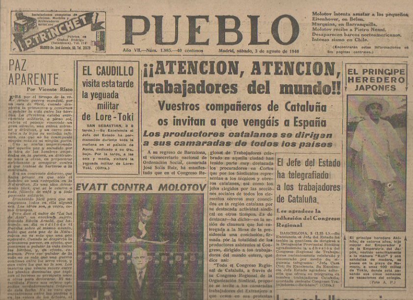 PUEBLO. AÑO VII. NUM. 1.985. MADRID, SABADO, 3 de AGOSTO DE 1946.