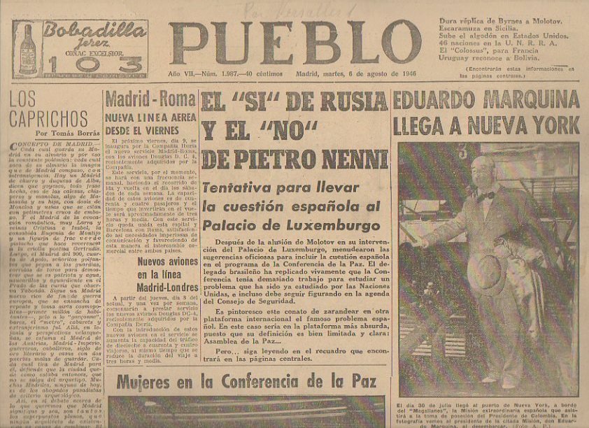 PUEBLO. AÑO VII. NUM. 1.987. MADRID, MARTES, 6 de AGOSTO DE 1946.