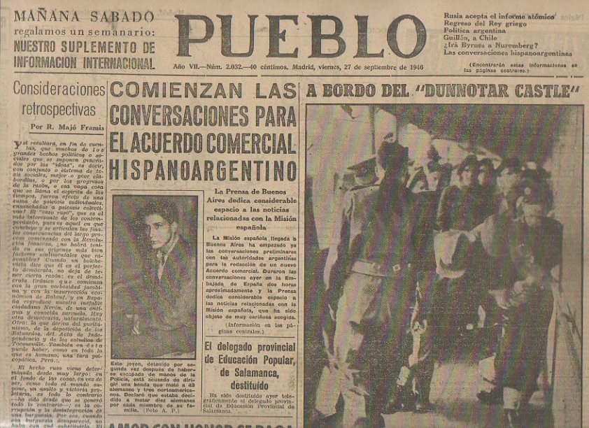 PUEBLO. AÑO VII. NUM. 2.032 MADRID, VIERNES, 27 DE SEPTIEMBRE DE 1946.