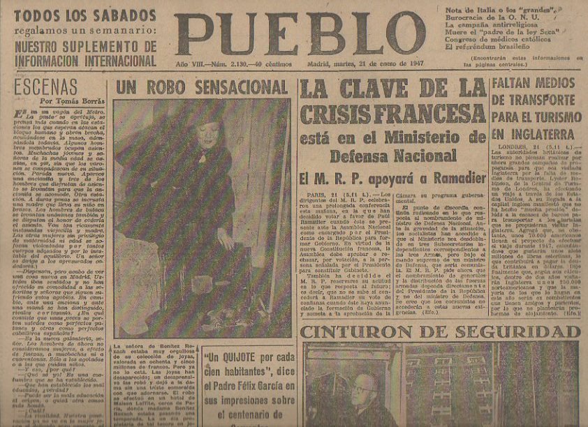 PUEBLO. AÑO VIII. NUM. 2.130. MADRID, MARTES, 21 DE ENERO DE 1947.