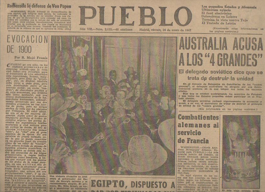 PUEBLO. AÑO VIII. NUM. 2.133. MADRID, VIERNES, 24 DE ENERO DE 1947.