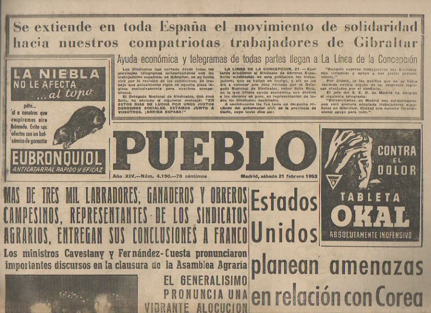 PUEBLO. AÑO XIV. NUM. 4.190. MADRID, SABADO 21 DE FEBRERO 1953.