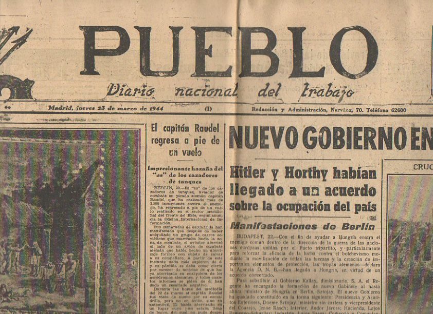 PUEBLO. DIARIO NACIONAL DEL TRABAJO. AÑO V. NUM. 1.151. MADRID, JUEVES 23 DE MARZO 1944.