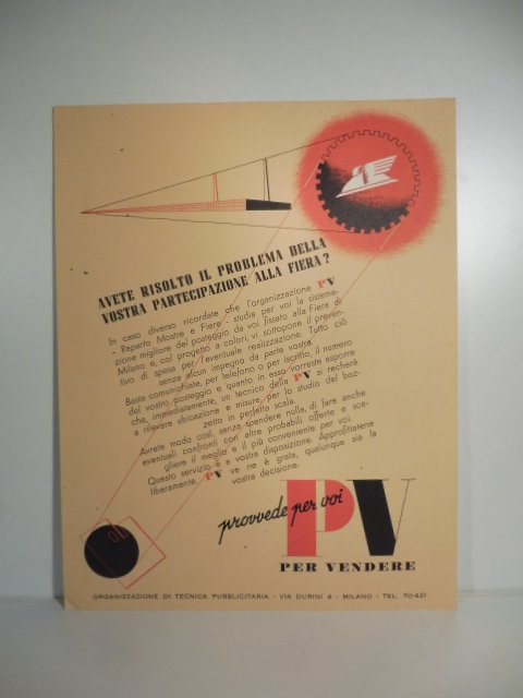 PV. Per vendere. Avete risolto il problema della vostra partecipazione alla fiera? (Cartoncino pubblicitario)
