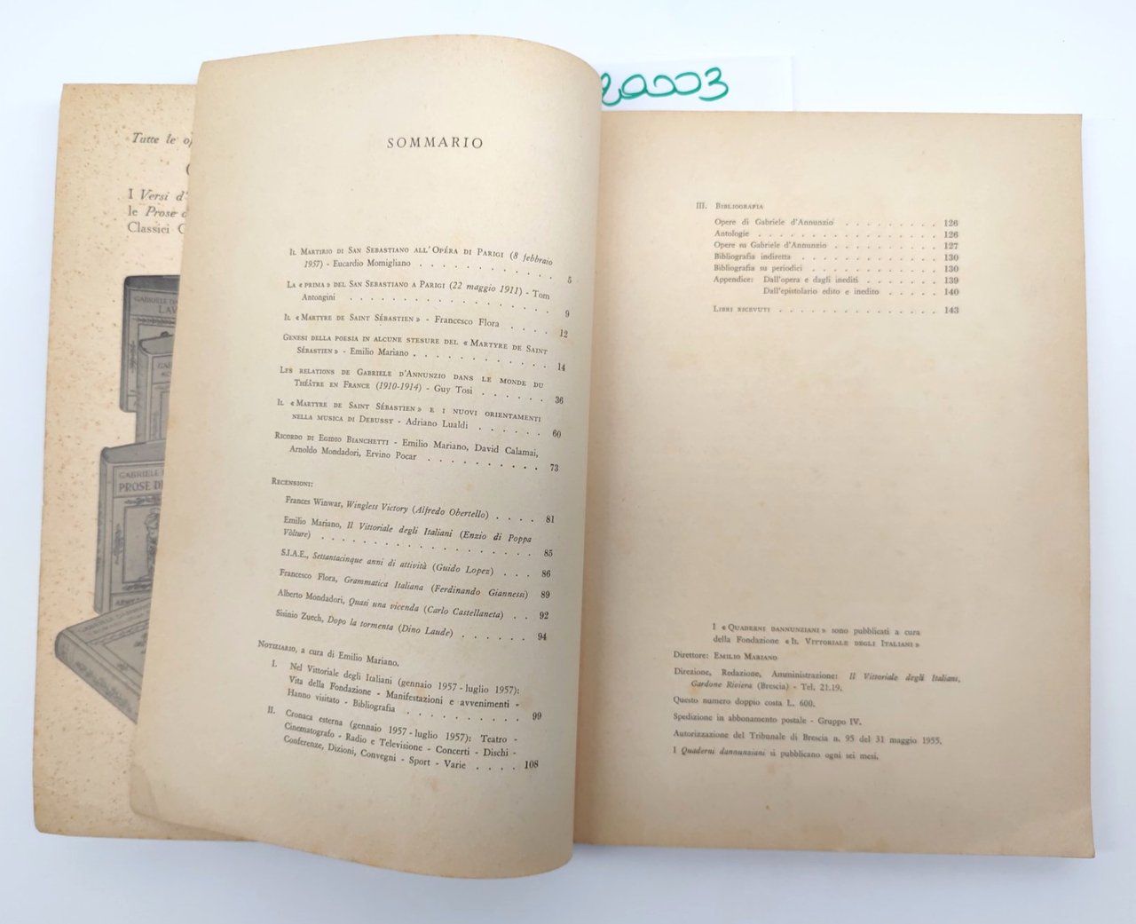Quaderni Dannunziani 1957 fascicolo VI-VII edizione Fondazione Il Vittoriale Degli Italiani