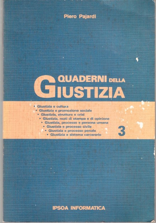 Quaderni della Giustizia 3: Giustizia e cultura, Giustizia e promozione sociale, Giustizia, strutture e crisi, Giustizia, reati di stampa e di opinione, Giustizia, processo e persona umana, Giustizia e processo civile, Giustizia e processo penale, Giustizia e sistema carcerario
