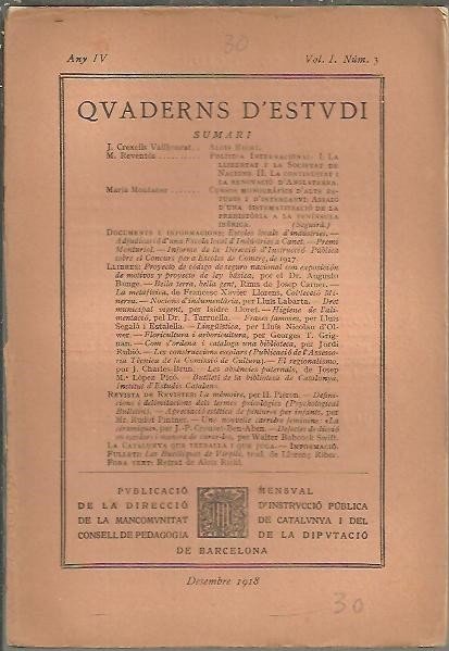 QUADERNS D'ESTUDI. ANY IV. VOL. I. N. 3.