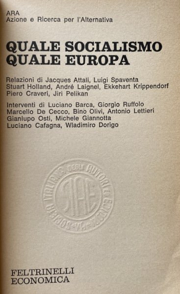 QUALE SOCIALISMO, QUALE EUROPA | Libros antiguos y modernos | Jacques Attali, Luigi Spaventa, Stuart Holland, André Laignel, E, Kkehart Krippendorff, Piero Craveri, Jiri Pelikan, Luciano Barca, , Giorgio Ruffolo, Marcello De Cecco, Bino Olivi, Antonio Lettie, Ri, Gianlupo Osti, Michele Giannotta, Luciano Cafagna