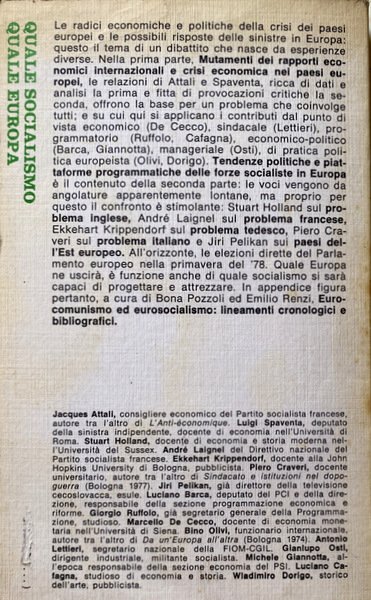 - Jacques Attali, Luigi Spaventa, Stuart Holland, André Laignel, E, Kkehart Krippendorff, Piero Craveri, Jiri Pelikan, Luciano Barca, , Giorgio Ruffolo, Marcello De Cecco, Bino Olivi, Antonio Lettie, Ri, Gianlupo Osti, Michele Giannotta, Luciano Cafagna