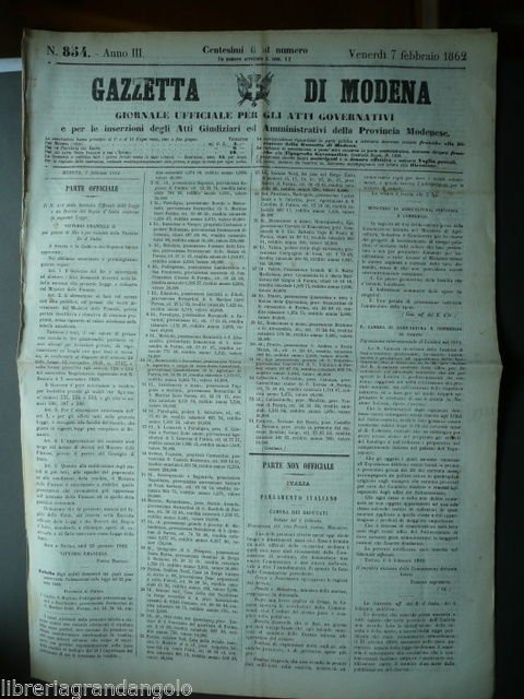 Quotidiani Gazzetta Modena 1862 Risorgimento Beni Demaniali Alienati Parma