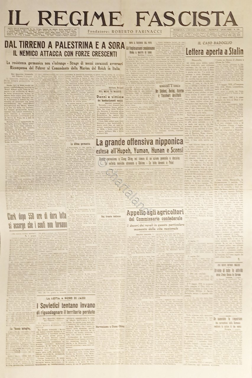Quotidiano - Il Regime Fascista n. 133 - 1944 Dal Tirreno a Palestrina e a Sora
