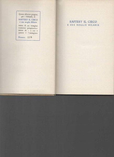 In 16°, cop. edit. rigida, pp. 198,(2); coll. "Carissima mia. 1", copia nr. 119 delle 500 stampate in ediz. pregiata per i bibliofili, copia molto buona. (m200)