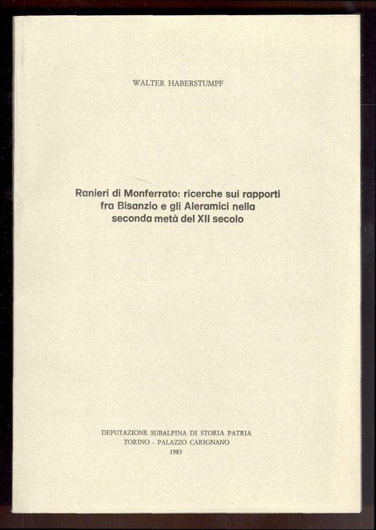 Ranieri di Monferrato: ricerche sui rapporti fra Bisanzio e gli Aleramici nella seconda metà del XII secolo